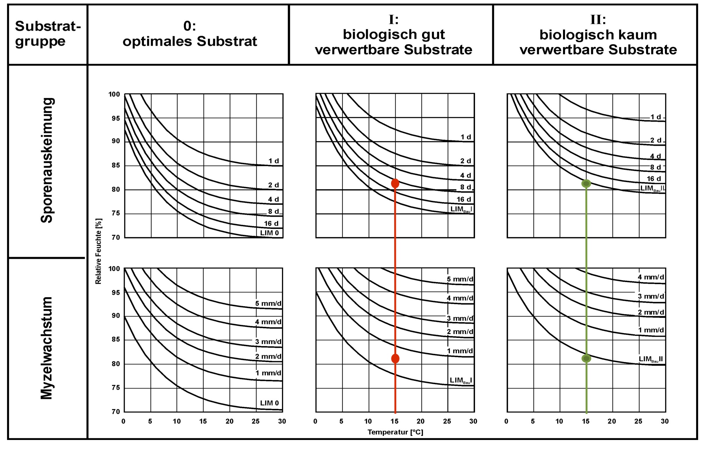 Nährstoffe auf der Oberfläche wie beispielsweise Staub, Zellulose, Tapeten, begünstigen zusätzlich das Schimmelwachstum – selbst wenn das Grundmaterial eigentlich wenig anfällig wäre. Mehr Grundlagen dazu im Blogbeitrag „Schimmelpilz – es kann schnell gehen“.